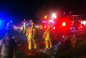 The California crash comes less than a day after a bus carrying 42 high school students and their chaperones slammed into an overpass in Boston. Massachusetts state police said 35 people were injured and that the driver had directed the bus onto a road with a height limit.